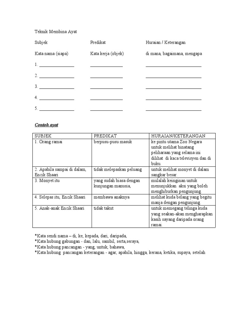 Lembaran kerja Latihan Bina Ayat Tahun 1 adalah satu contoh koleksi kami yang dapat membantu menjimatkan masa ibu bapa dalam memastikan yang terbaik untuk. Bina dua ayat tunggal dan dua ayat majmuk berdasarkan jadual di atas. Contoh Ayat menggunakan Perkataan situ dalam bahasa Melayu.
